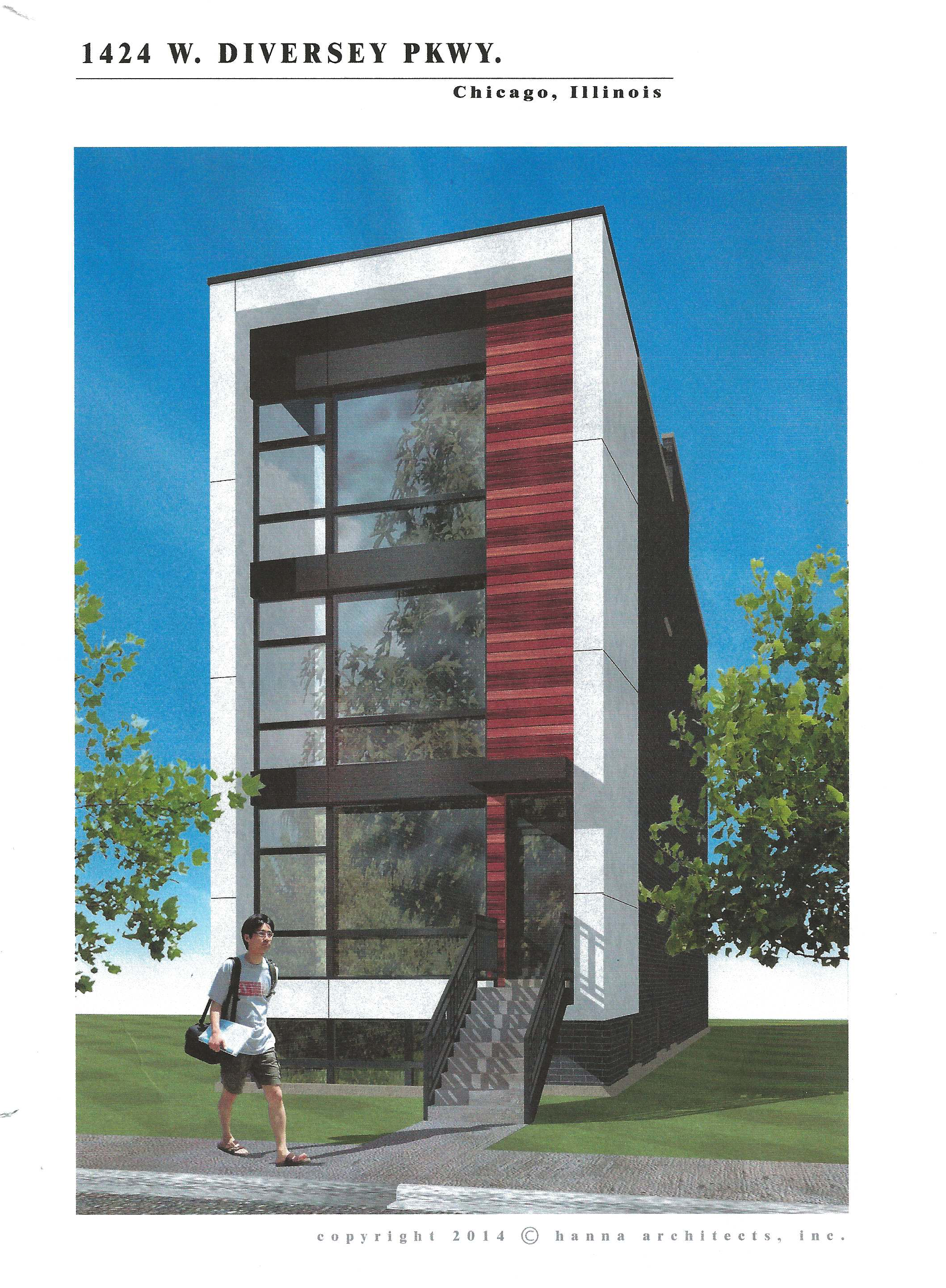 Plans will be presented for the property at 1424 W. Diversey to change the zoning from RT3.5 to RT4 for the purpose constructing a TWO unit condominium residential building that will be 38 feet tall. The CURRENT ZONING allows for the construction of a TWO unit condominium building with a height of 35 feet and smaller square footage of the units. PLEASE NOTE! This zoning change is supported by the SLN Zoning Review Committee and is consistent with the zoning criteria for Diversey Pkwy. passed by the SLN membership several years ago and approved by the Alderman.